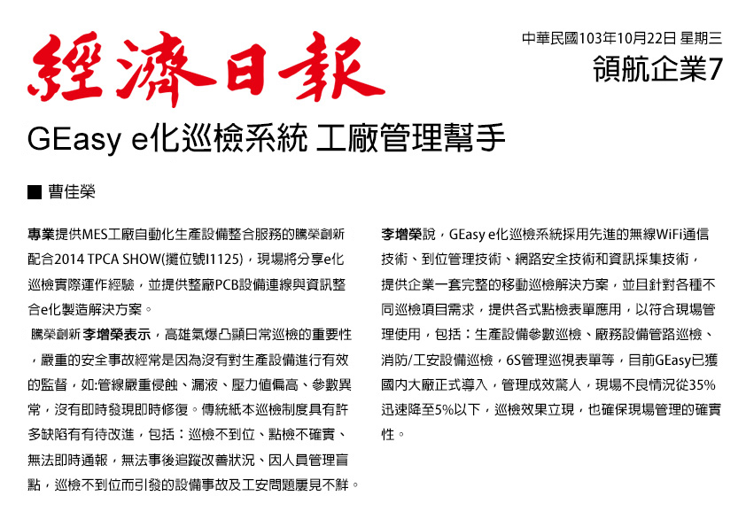 GEasy e化巡檢系統 工廠管理幫手